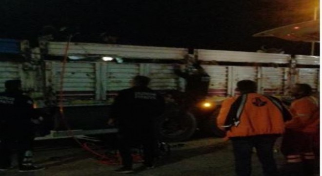 Erzincan'da kamyonun kasasının kapaklarına sıkışan büyükbaş hayvanlar, itfaiye ekipleri tarafından kurtarıldı.