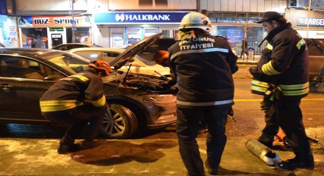 Soğuk havanın etkili olduğu Erzurum’da, ısınmak için bir otomobilin kaput kısmına giren kedi yavrusu, itfaiye ekiplerine ter döktürdü.