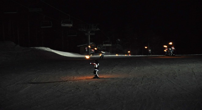 JAK timlerinden meşaleli kayak gösterisi