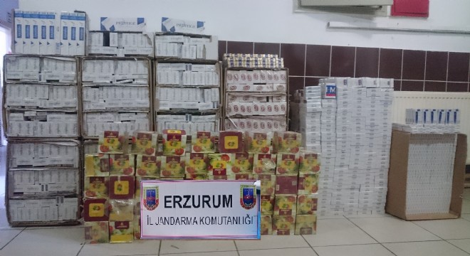 Erzurum’da jandarma ekiplerinin yaptığı yol uygulamalarında 21 bin 700 paket kaçak sigara ve 48 kilo nargile tütünü ele geçirildi.