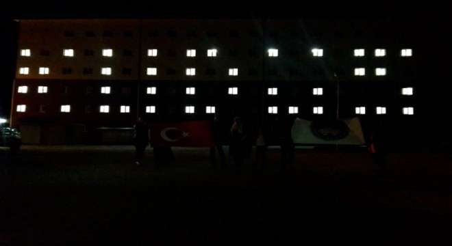 Kars'ta bulunan KYK yurtlarında barınan öğrenciler ABD ve İsrail'in, Filistin'de uyguladığı insanlık dışı saldırılar için yurt binalarına oda ışıklarıyla "Kudüs" yazarak protesto etti.