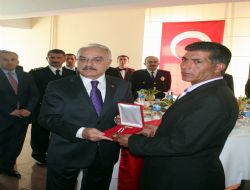 Vali Yenigün konuşmasının ardından Gazi Polis Muhammet Nuri Yazıcı’nın devlet övünç madalyasını takdim etti.