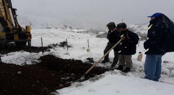 Erzincan’ın Refahiye ilçesinde dün gece saatlerinden itibaren etkili olan kar yağışı nedeniyle köylüler cenaze için mezar açamayınca özel idareden yardım istediler.
