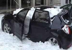 Kar ve tipinin etkili olduğu Erzurum’da, kar kazaları da vatandaşları mağdur ediyor. Erzurum merkezde meydana gelen olayda çatıdan otomobilin üzerine kar kütlesi düştü. Tonlarca ağırlığa dayanamayan otomobilin tavanı çöktü, camları patladı, hurdaya dönüştü. Bir süre sonra olay yerine gelen ve otomobilini kullanılamaz halde gören sürücü şok yaşadı.