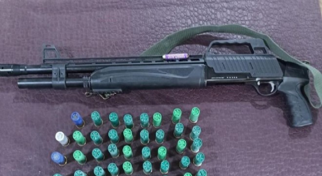 Şüphelinin ikametinde yapılan arama sonucunda; 1 adet ruhsatsız otomatik av tüfeği, bu tüfeğe ait 53 adet fişek ve çok sayıda dijital malzeme ele geçirildi.