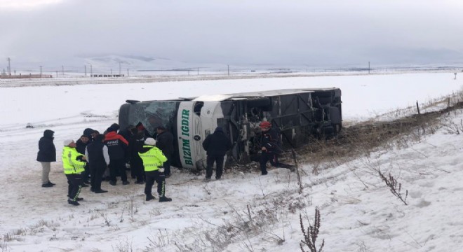 Kars yolunda yolcu otobüsü devrildi: 23 yaralı