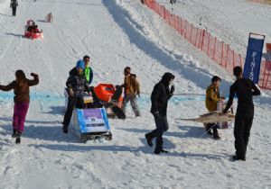 Türkiye’nin en önemli kayak merkezlerinden biri olan Palandöken’de düzenlenen karton kızak yarışları renkli görüntüler oluştururken, bazı öğrenciler yarışlarda YGS’nin stresini attı.