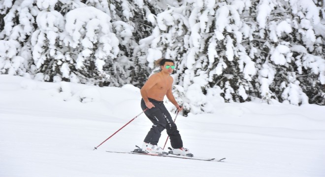 Kayak Merkezinde yarı çıplak kayak yaptı