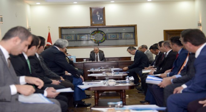 Erzurum Valisi Seyfettin Azizoğlu başkanlığında her ay düzenli olarak gerçekleştirilen Kaymakamlar toplantısı Erzurum Kongre binasında yapıldı