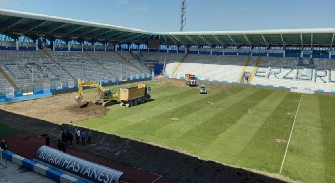 Yeni stadyum yapılıncaya kadar Erzurumspor'un maçlarını oynayacağı Kazım Karabekir Stadının zeminin hibrit çime dönüştürülmesi için kazma vuruldu ve iş makineleri stada girdi.