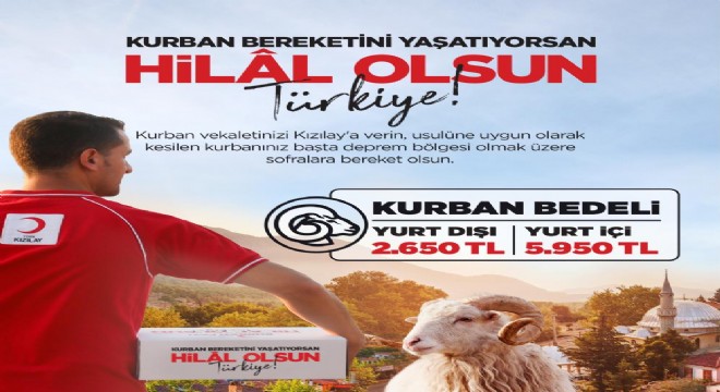 “Kurban bereketini yıl boyu yaşatıyorsan hilal olsun Türkiye” sloganıyla kurban kesim kampanyasını başlatan Kızılay, vekalet bedellerini açıkladı. Türkiye dahil 23 ülkede toplam 128 bin hisselik kurban kesmeyi hedefleyen Kızılay, Et ve Süt Kurumu iş birliğiyle hazırlayacağı kurban paylarının önemli bir bölümünü Kahramanmaraş merkezli depremlerin etkilediği afetzedelere et olarak dağıtacak. Kurban paylarından aşevlerinde sıcak yemek de yapacak olan Kızılay, Kurban Bayramı'nın getirdiği manevi atmosferi ve sevinci yıl boyunca yaşatmak için Et ve Süt Kurumu iş birliğiyle kavurma konservesi de yapacak.
