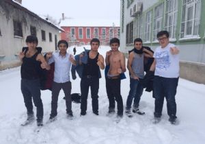 Erzurum’da bir grup lise öğrencisi termometrelerin en düşük hava sıcaklığını eksi 14 gösterdiği kentte soyunarak buz gibi havaya meydan okudular.