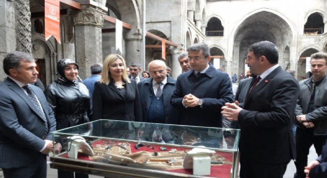 Oltu taşından yapılan ürünlerin yer aldığı sergide 600 çeşit bin 500 ürün sergilendi. Sergi 3 gün boyunca devam edecek.