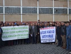 ERZURUM (İHA) - Erzurum şeker Fabrikasında çalışan mevsimlik işçiler, fabrika binası önünde toplanarak, ellerindeki pankartlarla kadro isteklerini dile getirdiler.