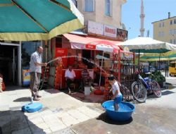 Kaldırıma çamaşır leğeni koyan Kıyasettin Bayoğlu isimli vatandaş, 2 yaşındaki oğlu Efe Kaan Bayoğlu’nu bu yöntemle serinletti. Minik Efe’yi leğenin içerisine koyan Bayoğlu, zaman zaman da hortumla su takviyesi yaparak, ilginç görüntü oluşturdu. Suda yüzerek serinleyen Efe, ellerini suya çarparak etrafa saçtığı gülücüklerle yoldan geçenlerin de ilgi odağı oldu.