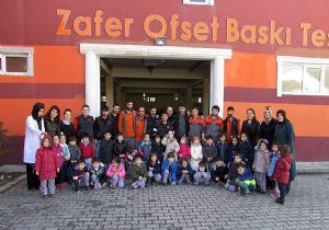 Çocukların ziyaretinden ziyadesiyle memnun olduklarını söyleyen Zafer Ofset ve Baskı Tesisleri Yönetim Kurulu Başkanı Metin Barlak, çocuklara ve öğretmenlerine kendi matbaalarında yaptıkları ajandalardan ve kitaplardan hediye etti.