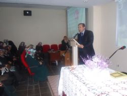 Program istiklal marşının okunmasıyla başladı. Kur’an Kursu öğrencilerinden kur’anı kerim tilaveti dinlendikten sonra açılış konuşmalarını yapan ilçe Müftüsü Celal Büyük, “Bu özlediğimiz bir tablo yaklaşık 300 kişilik salonumuza 500 bayan kardeşimiz iştirak etti bu bağlamda katılımcı kardeşlerime çok teşekkür ediyorum. Biz müftülük olarak geleceğimizin teminatı çocuklarımızı yetiştiren bayanları çok önemsiyoruz. Zaten bunun için 40’a yakın Kur’an Kursumuzun %80’i bayan kursiyerimizden oluşuyor. Bu bağlamda Hz. Peygamber efendimiz (s.a.v)’in bize miras bıraktığı sizin en hayırlınız hanımlarına en iyi davrananınızdır ahlakını yaşatmayı rabbim cümlemize nasip etsin” diye konuştu.