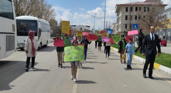 Aşkale İnkılâp İlköğretim Okulu öğrencileri yapılan israflara dikkat çekmek için ilçe merkezinde bir yürüyüş yaptı.