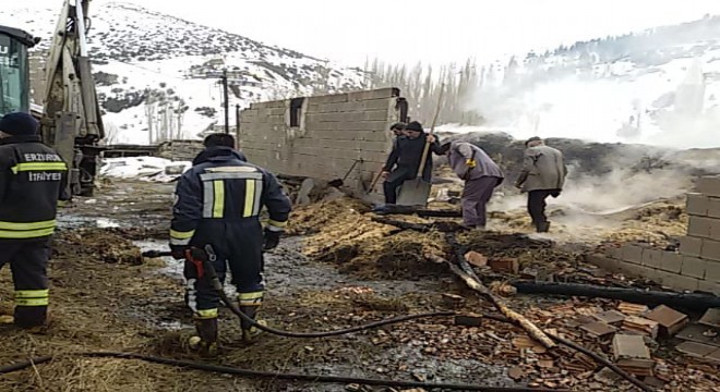 Oltu İlçesine bağlı Dokuzdeğimen köyünde çıkan yangından bir ev, bir ahır ve 20 ton saman kül oldu.