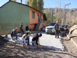 ERZURUM (İHA) - Oltu Kaymakamlığı Köylere Hizmet Götürme Birliği tarafından köylere verilen parke taşı köylüler tarafından döşeniyor. Kar yağmadan önce taşları döşemek için seferberlik ilan eden 7’den 70’e köylüler hummalı bir çalışmaya koyuldular.