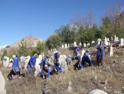 ERZURUM (İHA) - Erzurum'un Oltu ilçesinde 30 kadın, 50 yıldır el değmeyen Oltu Cankurtaran Mezarlığı'nı ellerindeki oraklarla yabancı otlardan temizledi.