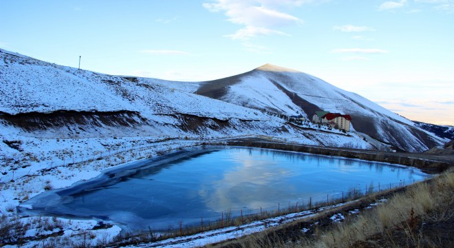 Doğu Anadolu Bölgesi’nde kar yağışının ardından etkili olan soğuk hava Palandöken Kayak Merkezi'ndeki göletin yüzeyini dondurdu.