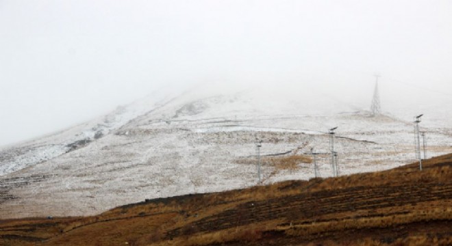 Erzurum'da 3200 rakımlı Palandöken Dağı'nın zirvesi yağan karla beyaza büründü.