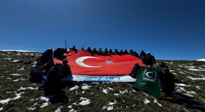 Yaklaşık 50 dağcının katıldığı yürüyüşün ardından zirvede saygı duruşunda bulunan katılımcılar İstiklal Marşı’nı okuduktan sonra inişe geçti.