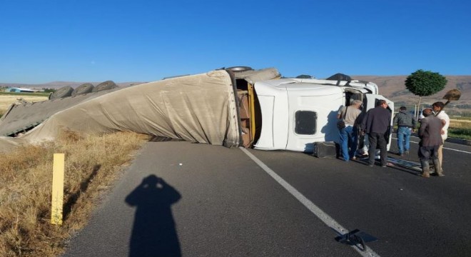 Pasinler yolunda TIR devrildi: 1 yaralı