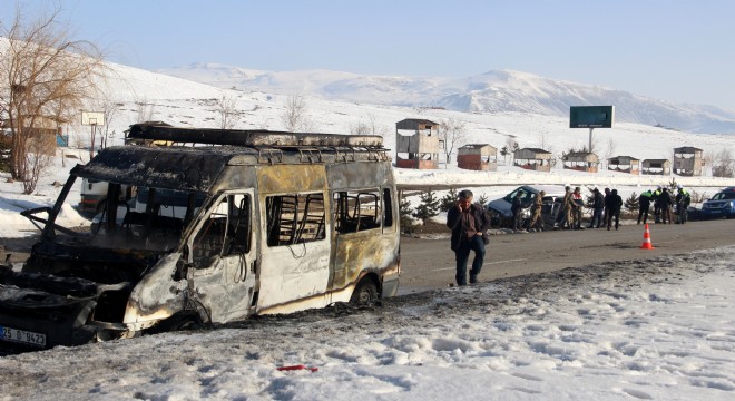 Kaza bugün saat 09.00 sıralarında Erzurum-Pasinler karayolu üzerinde meydana geldi. Alınan bilgiye göre, Nihat Sönmez idaresindeki 25 D 9423 plakalı minibüs ile 44 EC 283 plakalı otomobil kavşakta çarpıştı. Kazada minibüs savrularak refüje çarptı ve bir süre sonra alev alev yanmaya başladı.