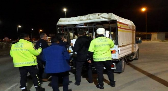 Olay, Erzincan - Erzurum kara yolu Akyazı mevkiinde gece saatlerinde yaşandı. Alınan bilgiye göre, plakasını kapatarak yolda seyreden ve kasasında büyükbaş hayvan bulunan kamyonet, uygulama noktasında durdurulmak istendi. Polisin ‘dur’ ikazına riayet etmeyen sürücü Y.Ç., araçla yola devam etti. Kısa bir sürelik takibin ardından durdurulan araç denetim istasyonuna getirildi. Burada yapılan incelemede kamyonetteki yükün tonajı aştığı, büyükbaş hayvanlarında nâkile uygun olmadığı tespit edildi.