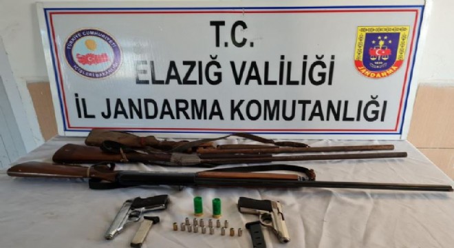 Elazığ İl Jandarma Komutanlığı ekiplerinin ruhsatsız silah operasyonları devam ediyor. İl Jandarma Komutanlığı ekiplerince, D.A. isimli şüphelinin evinde ruhsatsız silah bulundurduğu bilgisinin alınması üzerine şüphelinin evine operasyon düzenlendi. Şüphelinin evinde yapılan aramada, 2 adet tabanca ve bu tabancalara ait 14 adet tabanca mermisi, 3 adet ruhsatsız av tüfeği ve 2 adet av tüfeği fişeği ele geçirildi. Jandarma ekiplerince ruhsatsız tabanca ve mermilere el konulurken şüpheli D.A. hakkında yasal işlem başlatıldı.