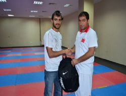 Yıllarca Emre Şahin’e antrenörlük yapan Çelebispor Kulübü Kurucu Başkanı Ahmet Çelebi, spor malzemesi hediye etti. Antrenör Hasan Söylemez nezaretinde çalışmalarını sürdüren ve Trabzon’da yapılan Türkiye şampiyonasında Erzurum’a bronz madalya kazandıran Emre Şahin, karate yaptığı dönemden hocası olan Ahmet Çelebi’nin kendisine destek vermesinden dolayı büyük bir mutluluk duyduğunu söyledi. Trabzon’da yapılan Türkiye şampiyonasına Altı sporcu ile şampiyonaya katılan Erzurum, bir üçüncü çıkartmıştı. Çelebisporlu Emre Şahin, üçüncü olarak bronz madalya kazanarak Erzurum’a dönmüştü.