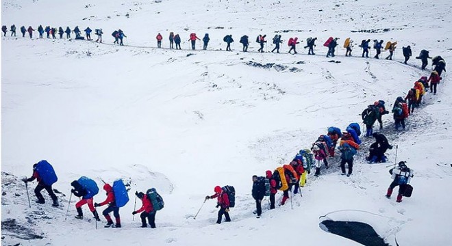 Türkiye Dağcılık Federasyonu tarafından gerçekleştirilen anma tırmanışı kapsamında 203 sporcu ile Sarıgül Köyü’ndeki ilk kampın ardından 2 bin 800 metre yükseklikte bulunan ana kampa ulaştı. Allahuekber Dağı zirvesine ulaşan ekip sonrasında zirve altında bulunan Sarıkamış Şehitliği’ne ulaştı.