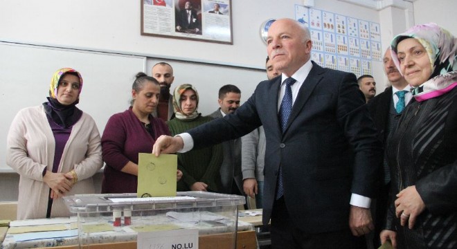 Erzurum Büyükşehir Belediye Başkanı Mehmet Sekmen, eşi Gülay Sekmen ile birlikte Kültür Kurumu İlköğretim Okulu’ndaki 1186 numaralı sandıkta oyunu kullandı.