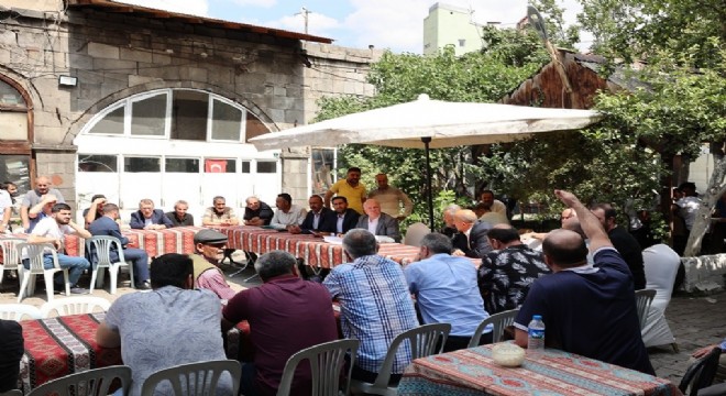 Başkan Sekmen’in Erzurum’un tarihi ve turistlik mekanlarının restore edilmesi noktasında sıkça dile getirdiği projeleri arasında bulunan Hacılar Hanı’nın iyileştirilmesine bağlı olarak bir görüşme yapıldı. Başkan Sekmen, bu gün ziyaret ettiği esnafla çay içti ve “Gürcükapı’da Hacılar Hanı esnafımızı ziyaret ederek bölgedeki çevre düzenlemesi ile alakalı hemşerilerimizin de fikirlerine başvurduk. Cenab-ı Hak, esnafımıza bol ve bereketli kazançlar ihsan eylesin.” dedi.