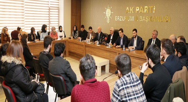 Büyükşehir Belediye Başkanı Mehmet Sekmen, AK Parti Erzurum İl Başkanlığı’nda düzenlen gençlik protokolü imza törenine katıldı. Burada düzenlenen basın toplantısında konuşan AK Parti Erzurum İl Başkanı Mehmet Emin Öz, “Protokol metnini okurken ben sevinerek şunu gördüm. Büyükşehir Belediyemiz bunların birçoğunu yapıyor zaten. Uzun zamandan beri Büyükşehir Belediyemizin gençlere yönelik yaptığı çok büyük faaliyetler var. AK Partili Belediyelerin gençlere verdiği değerin de bir kanıtıdır bu çalışma ve projeler AK Parti her alanda olduğu gibi gençlik için de önemli çalışmalar yapmaktadır” dedi. Erzurum Büyükşehir Belediye Başkanı Mehmet Sekmen de, “Türkiye’de 17 yıldır AK Parti ile devam eden köklü dönüşüm süreci, birçok alanda olduğu gibi, gençlik alanında da paradigmatik nitelikli değişimlerin yaşanmasına katkı sağlamıştır. AK Parti ile birlikte hayata geçen değişimlerle özgür düşünceli, kendi başına karar verebilen, sorgulayan, kendi toplumunun ve evrensel anlayışın doğrularından haberdar olan ve hayatın güçlükleri ile baş edebilecek bir donanıma sahip gençliğin inşası sağlanmıştır” diye konuştu.