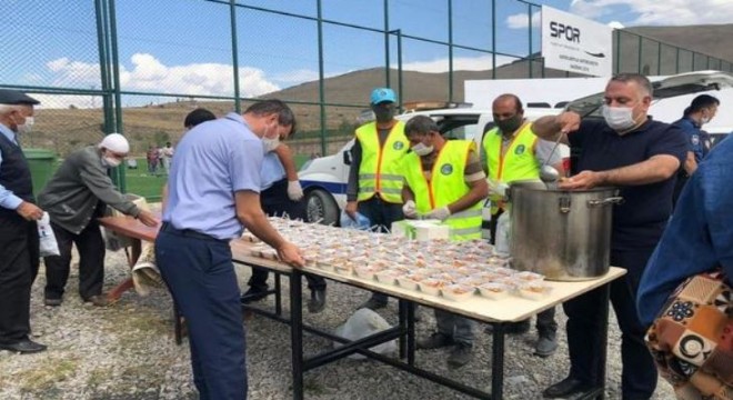Muharrem ayı nedeni ile Şenkaya Belediyesi tarafından pişirilen aşure, Cuma namazı sonrası Belediye Başkanı Yavuz Bedir tarafından vatandaşlara dağıtıldı.