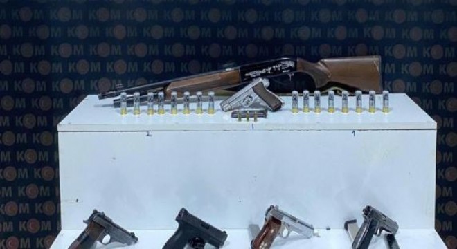 Polisin düzenlediği operasyonda, 5 ruhsatsız tabanca,1 av tüfeği, 6 şarjör, 70 tabanca fişeği, 16 av fişeği, 3 gerdel yayı ve 2 icra yayı ele geçirilerek muhafaza altına alındı.