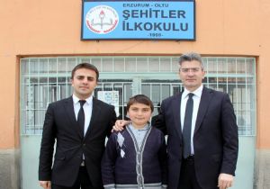Şehitler İlkokulu 4-C sınıfı öğrencilerinden Okan Şimşek, derecesinden dolayı İlçe Milli Eğitim Müdürü Ömer Zengin tarafından altınla ödüllendirdi.
