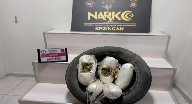 Erzincan’da durdurulan bir otomobilde narkotik dedektör köpeğinin tepki vermesi üzerine yapılan aramada stepneye saklanan 3 kilo 288 gram esrar ele geçirildi. Olayla 2 ilgili 2 kişi tutuklandı.