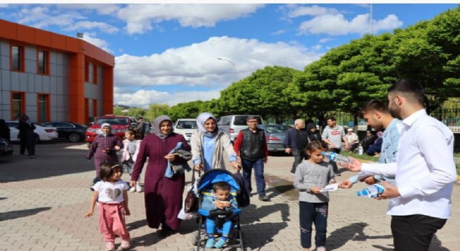 Oltu Beşeri ve Sosyal Bilimler Fakültesi İşletme Bölümü Öğrencileri tarafından su kıtlığına dikkat çekmek için broşür ve su dağıttılar.