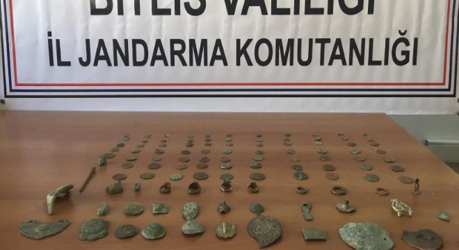 Konuyla ilgili olarak Bitlis Valiliğinden yapılan açıklamada, “Bitlis İl Jandarma Komutanlığınca Tarihi Eser Kaçakçılığı ile mücadele kapsamında yapılan çalışmalar neticesinde, Van ili Erciş ilçesinde ikamet etmekte olan 3 şahsın Roma ve Bizans dönemlerine ait tarihi eserleri satmak için alıcı aradıkları yönünde bilgi elde edilmesi üzerine, 22.08.2019 günü Tatvan’da şahıslarla alıcı kılığında buluşma sağlanmış ve 3 şahıs suçüstü olarak yakalanmış, yapılan aramada 75 adet Sikke, 7 adet yüzük, 1 adek mühür ve 26 adet tarihi obje ele geçirilmiştir. Güvenlik güçlerimiz bölge halkımızın da desteği ile huzur ve güvenliği sağlamak maksadıyla, ilimiz genelinde suç ve suçlularla mücadelesini kararlılıkla sürdürecektir” denildi.