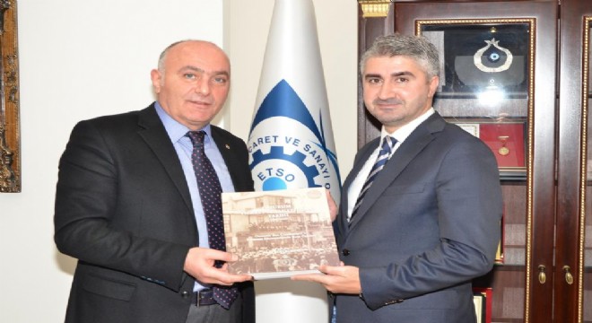 Ziyarette Başkan Özakalın Bakan Yardımcısı Tarıkdaroğlu’na ETSO Tarihi kitabı ve Oltutaşı tespih hediye etti.