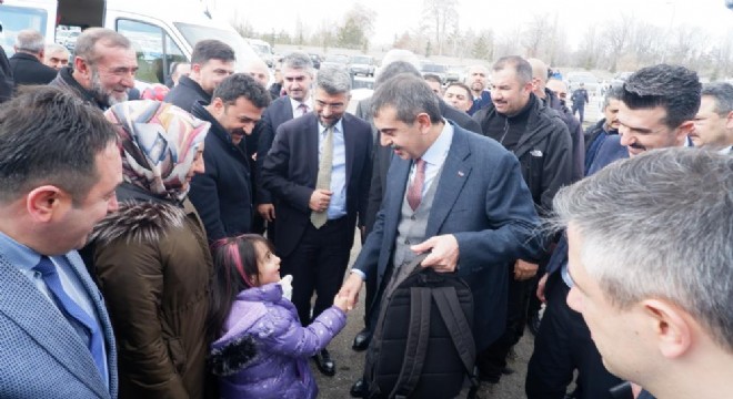 Bir dizi temaslarda bulunmak üzere memleketi Erzurum’a gelen Milli Eğitim Bakanı Yusuf Tekin, AK Parti Seçim Koordinasyon Merkezinin açılış programının ardından Aziziye ilçesinde düzenlenen kahvaltı programında mahalle muhtarları ile buluştu. Bakan Tekin, annesiyle birlikte kendisini karşılamaya gelen minik bir öğrenciye çanta hediye etti.
