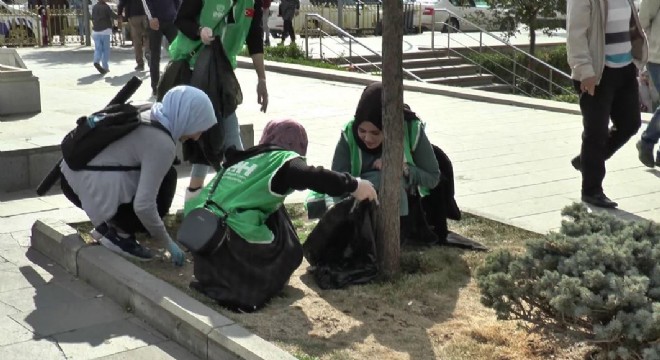 Erzurum’da İnsani Yardım Vakfı üyesi gençler, çevre temizliği ile farkındalık çalışması yaptı.