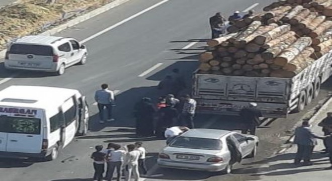 Erzurum’da ağaç yüklü kamyon, yolcuları taşıyan minibüse çarptı. Kazada şans eseri kimse yaralanmadı.