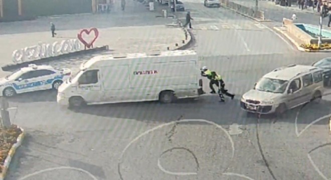 Alınan bilgiye göre, kentin en işlek bölgesi olan Dörtyol kavşağında bir kamyonet ışıklarda arıza yaptı. Olayı gören Erzincan İl Emniyet Müdürlüğü Trafik Şube Müdürlüğü ekipleri, sürücünün mağdur olmaması için aracı itmeye başladı. Aracı sürücü ile birlikte yol kenarına kadar iten trafik polisleri, daha sonra sürücüye gerekli yardımı sağladı. Trafik polislerinin aracı ittiği anlar ise anbean MOBESE kamerasına yansıdı.