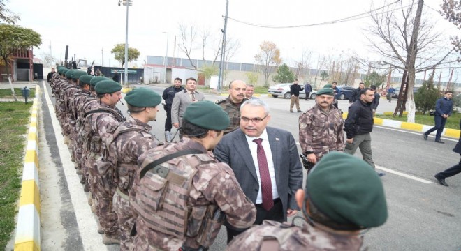 Vali Gündüzöz, İl Jandarma Komutanlığı önünde personelle hatıra fotoğrafı çektirerek, şeref defterini imzaladı.