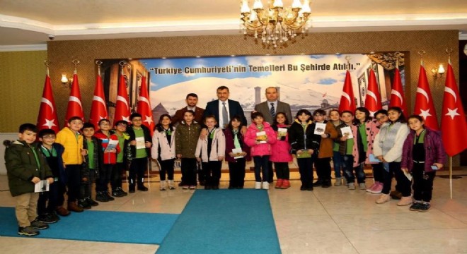 Erzurum Valisi Mustafa Çiftçi, Şehit Kubilay Karaman İlkokulu üçüncü sınıf öğrencileri ve öğretmenleriyle makamında bir araya geldi.